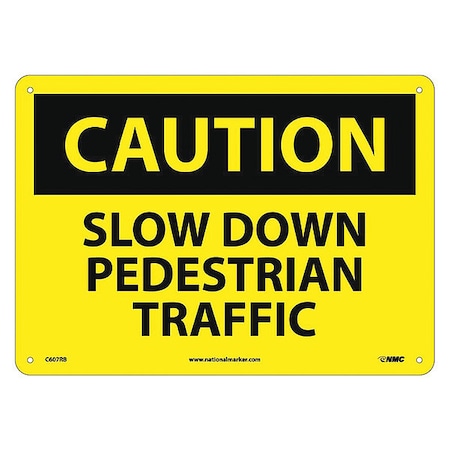 NMC C607RB OSHA Sign, Legend "CAUTION - SLOW DOWN PEDESTRIAN TRAFFIC", 14" Length x 10" Height, Rigid Plastic, Black on Yellow