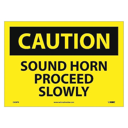 NMC C608PB OSHA Sign, Legend "CAUTION - SOUND HORN PROCEED SLOWLY", 14" Length x 10" Height, Pressure Sensitive Vinyl, Black on Yellow