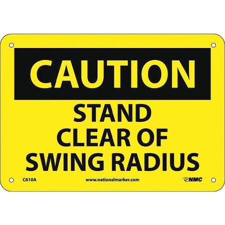 NMC C610A OSHA Sign, Legend "CAUTION - STAND CLEAR OF SWING RADIUS", 10" Length x 7" Height, Aluminum, Black on Yellow