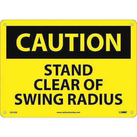 NMC C610AB OSHA Sign, Legend "CAUTION - STAND CLEAR OF SWING RADIUS", 14" Length x 10" Height, Aluminum, Black on Yellow