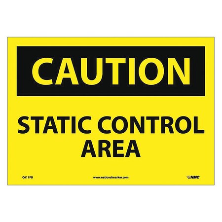 NMC C611PB OSHA Sign, Legend "CAUTION - STATIC CONTROL AREA", 14" Length x 10" Height, Pressure Sensitive Vinyl, Black on Yellow