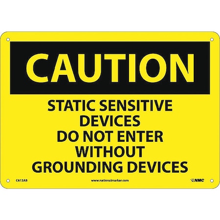 NMC C612AB OSHA Sign, Legend "CAUTION - STATIC SENSITIVE DEVICES DO NOT ENTER WITHOUT GROUNDING DEVICES", 14" Length x 10" Height, Aluminum, Black on Yellow