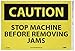 | Feature | Header "CAUTION" and legend "STOP MACHINE BEFORE REMOVING JAMS" |