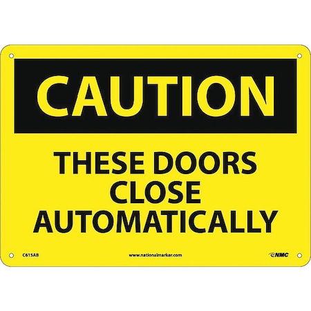 NMC C615AB OSHA Sign, Legend "CAUTION - THESE DOORS CLOSE AUTOMATICALLY", 14" Length x 10" Height, Aluminum, Black on Yellow