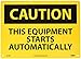 - Header "CAUTION" and legend "THIS EQUIPMENT STARTS AUTOMATICALLY"