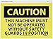 - Header "CAUTION" and legend "THIS MACHINE MUST NOT BE OPERATED WITHOUT SAFETY GUARDS IN POSITION"