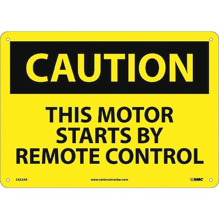 NMC C622AB OSHA Sign, Legend "CAUTION - THIS MOTOR STARTS BY REMOTE CONTROL", 14" Length x 10" Height, Aluminum, Black on Yellow