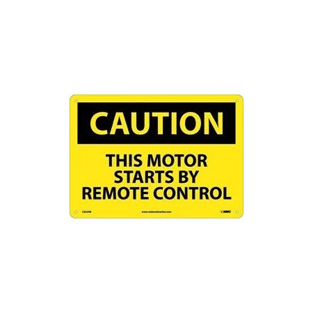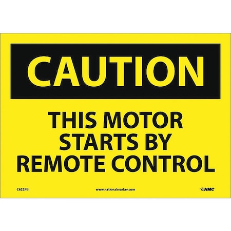 NMC C622PB OSHA Sign, Legend "CAUTION - THIS MOTOR STARTS BY REMOTE CONTROL", 14" Length x 10" Height, Pressure Sensitive Vinyl, Black on Yellow