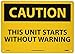 - Header "CAUTION" and legend "THIS UNIT STARTS WITHOUT WARNING"