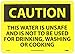 - Header "CAUTION" and legend "THIS WATER IS UNSAFE AND IS NOT TO BE USED FOR DRINKING, WASHING OR COOKING"