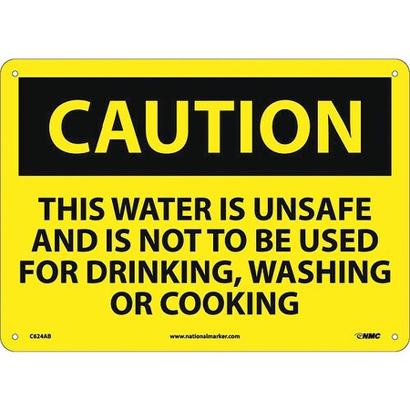 NMC C624AB OSHA Sign, Legend "CAUTION - THIS WATER IS UNSAFE AND IS NOT TO BE USED FOR DRINKING, WASHING OR COOKING", 14" Length x 10" Height, Aluminum, Black on Yellow