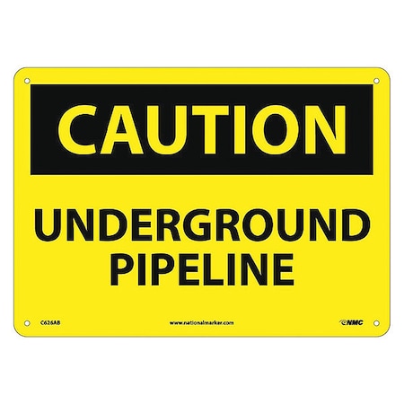 NMC C626AB OSHA Sign, Legend "CAUTION - UNDERGROUND PIPELINE", 14" Length x 10" Height, Aluminum, Black on Yellow