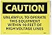 - Header "CAUTION" and legend "UNLAWFUL TO OPERATE THIS EQUIPMENT WITHIN 10 FT OF HIGH VOLTAGE LINES"