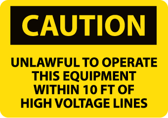 | Feature | Header "CAUTION" and legend "UNLAWFUL TO OPERATE THIS EQUIPMENT WITHIN 10 FT OF HIGH VOLTAGE LINES" |