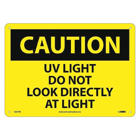 NMC C631RB OSHA Sign, Legend "CAUTION - UV LIGHT DO NOT LOOK DIRECTLY AT LIGHT", 14" Length x 10" Height, Rigid Plastic, Black on Yellow