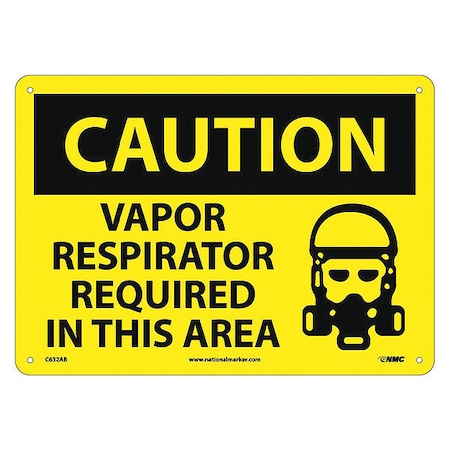 NMC C632AB OSHA Sign, Legend "CAUTION - VAPOR RESPIRATOR REQUIRED IN THIS AREA" with Graphic, 14" Length x 10" Height, Aluminum, Black on Yellow