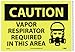 | Feature | Header "CAUTION" and legend "VAPOR RESPIRATOR REQUIRED IN THIS AREA" with graphic |