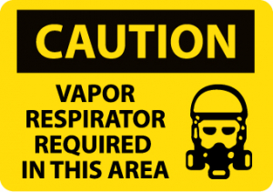 - Visibility: the legend “CAUTION - VAPOR RESPIRATOR REQUIRED IN THIS AREA” is printed in bold font to ensure better visibility. It features a graphic that has a head wearing a full respirator mask with helmet, making the message easy to understand