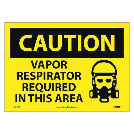 NMC C632PB OSHA Sign, Legend "CAUTION - VAPOR RESPIRATOR REQUIRED IN THIS AREA" with Graphic, 14" Length x 10" Height, Pressure Sensitive Vinyl, Black on Yellow