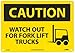 | Feature | Header "CAUTION" and legend "WATCH OUT FOR FORK LIFT TRUCKS" with graphic |