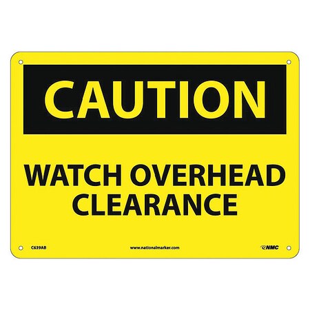 NMC C639AB OSHA Sign, Legend "CAUTION - WATCH OVERHEAD CLEARANCE", 14" Length x 10" Height, Aluminum, Black on Yellow