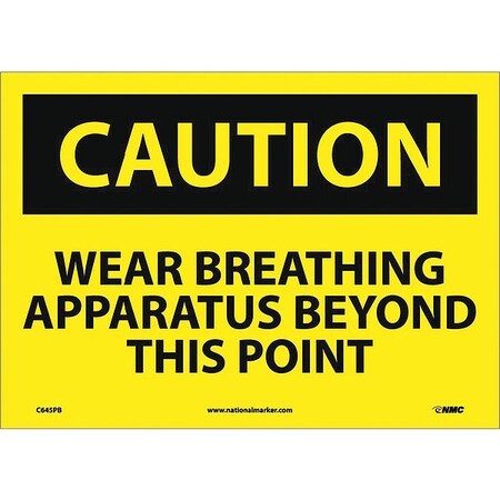 NMC C645PB OSHA Sign, Legend "CAUTION - WEAR BREATHING APPARATUS BEYOND THIS POINT", 14" Length x 10" Height, Pressure Sensitive Vinyl, Black on Yellow