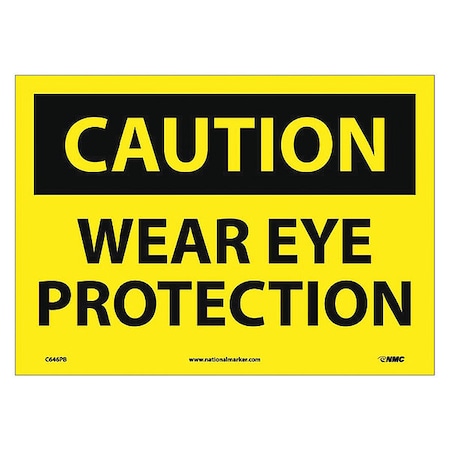 NMC C646PB OSHA Sign, Legend "CAUTION - WEAR EYE PROTECTION", 14" Length x 10" Height, Pressure Sensitive Vinyl, Black on Yellow