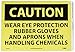 | Feature | Header "CAUTION" and legend "WEAR EYE PROTECTION RUBBER GLOVES AND APRONS WHEN HANDLING CHEMICALS" |
