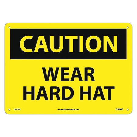 NMC C650RB OSHA Sign, Legend "CAUTION - WEAR HARD HAT", 14" Length x 10" Height, Rigid Plastic, Black on Yellow