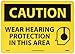 | Feature | Header "CAUTION" and legend "WEAR HEARING PROTECTION IN THIS AREA" with graphic |