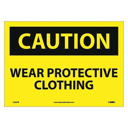 NMC C652PB OSHA Sign, Legend "CAUTION - WEAR PROTECTIVE CLOTHING", 14" Length x 10" Height, Pressure Sensitive Vinyl, Black on Yellow