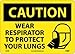 | Feature | Header "CAUTION" and legend "WEAR RESPIRATOR TO PROTECT YOUR LUNGS" with graphic |