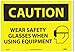 | Feature | Header "CAUTION" and legend "WEAR SAFETY GLASSES WHEN USING EQUIPMENT" with graphic |