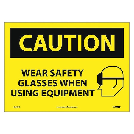 NMC C656PB OSHA Sign, Legend "CAUTION - WEAR SAFETY GLASSES WHEN USING EQUIPMENT" with Graphic, 14" Length x 10" Height, Pressure Sensitive Vinyl, Black on Yellow