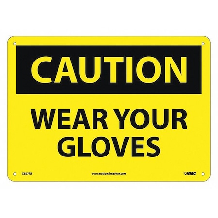NMC C657RB OSHA Sign, Legend "CAUTION - WEAR YOUR GLOVES", 14" Length x 10" Height, Rigid Plastic, Black on Yellow