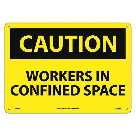 NMC C659RB OSHA Sign, Legend "CAUTION - WORKERS IN CONFINED SPACE", 14" Length x 10" Height, Rigid Plastic, Black on Yellow