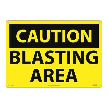 NMC C663RC OSHA Sign, Legend "CAUTION - BLASTING AREA", 20" Length x 14" Height, Rigid Plastic, Black on Yellow