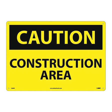 NMC C664RC OSHA Sign, Legend "CAUTION - CONSTRUCTION AREA", 20" Length x 14" Height, Rigid Plastic, Black on Yellow