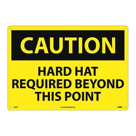 NMC C667RC OSHA Sign, Legend "CAUTION - HARD HAT REQUIRED BEYOND THIS POINT", 20" Length x 14" Height, Rigid Plastic, Black on Yellow
