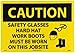 | Feature | Header "CAUTION" and legend "SAFETY GLASSES HARD HAT WORK BOOTS MUST BE WORN ON THIS JOBSITE" with graphic |
