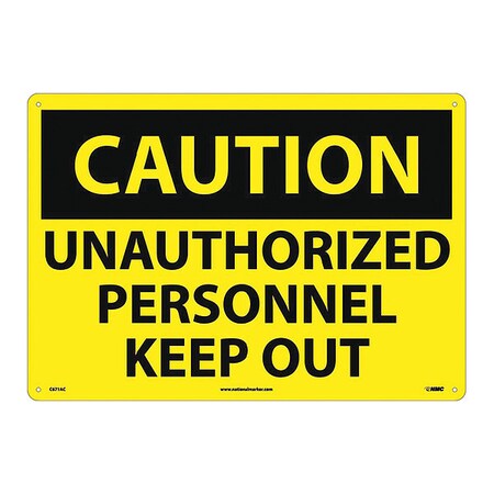 NMC C671AC OSHA Sign, Legend "CAUTION - UNAUTHORIZED PERSONNEL KEEP OUT", 20" Length x 14" Height, Aluminum, Black on Yellow