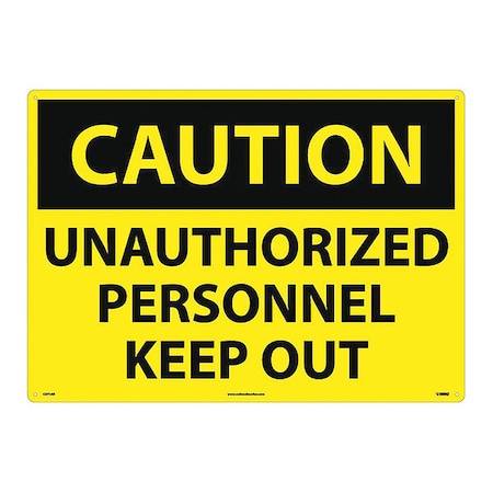 NMC C671AD OSHA Sign, Legend "CAUTION - UNAUTHORIZED PERSONNEL KEEP OUT", 28" Length x 20" Height, Aluminum, Black on Yellow