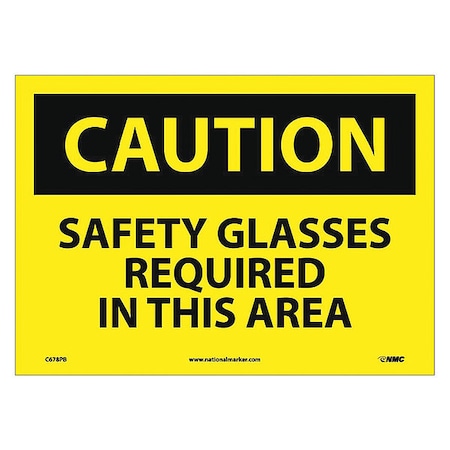 NMC C678PB OSHA Sign, Legend "CAUTION - SAFETY GLASSES REQUIRED IN THIS AREA", 14" Length x 10" Height, Pressure Sensitive Vinyl, Black on Yellow