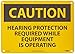 | Feature | Header "CAUTION" and Legend "HEARING PROTECTION REQUIRED WHILE EQUIPMENT IS OPERATING" |