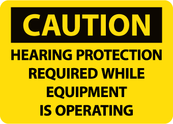 - Caution Signage: this sign alerts technicians or workers to wear ear protection while the equipment is operating at a workplace. It can be used at construction sites and other locations where loud machinery is used