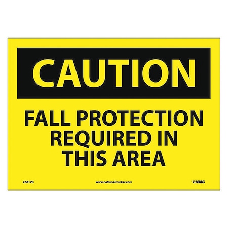 NMC C681PB CAUTION - FALL PROTECTION REQUIRED IN THIS AREA - 14 in. x 10 in. PS Vinyl Caution Sign with Yellow/Black Text on Black/Yellow Base