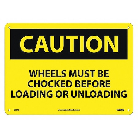 NMC C70RB CAUTION - WHEELS MUST BE CHOCKED BEFORE LOADING AND UNLOADING – 14 in. x 10 in. Plastic Caution Sign with Yellow/Black Text on Black/Yellow Base