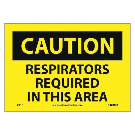 NMC C71P CAUTION - RESPIRATORS REQUIRED IN THIS AREA - 10 in. x 7 in. PS Vinyl Caution Sign with Yellow/Black Text on Black/Yellow Base