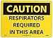 | Feature | Header "CAUTION" and Legend "RESPIRATORS REQUIRED IN THIS AREA" |