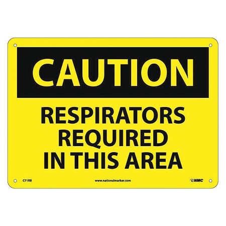 NMC C71RB CAUTION - RESPIRATORS REQUIRED IN THIS AREA - 14 in. x 10 in. Rigid Plastic Caution Sign with Yellow/Black Text on Black/Yellow Base